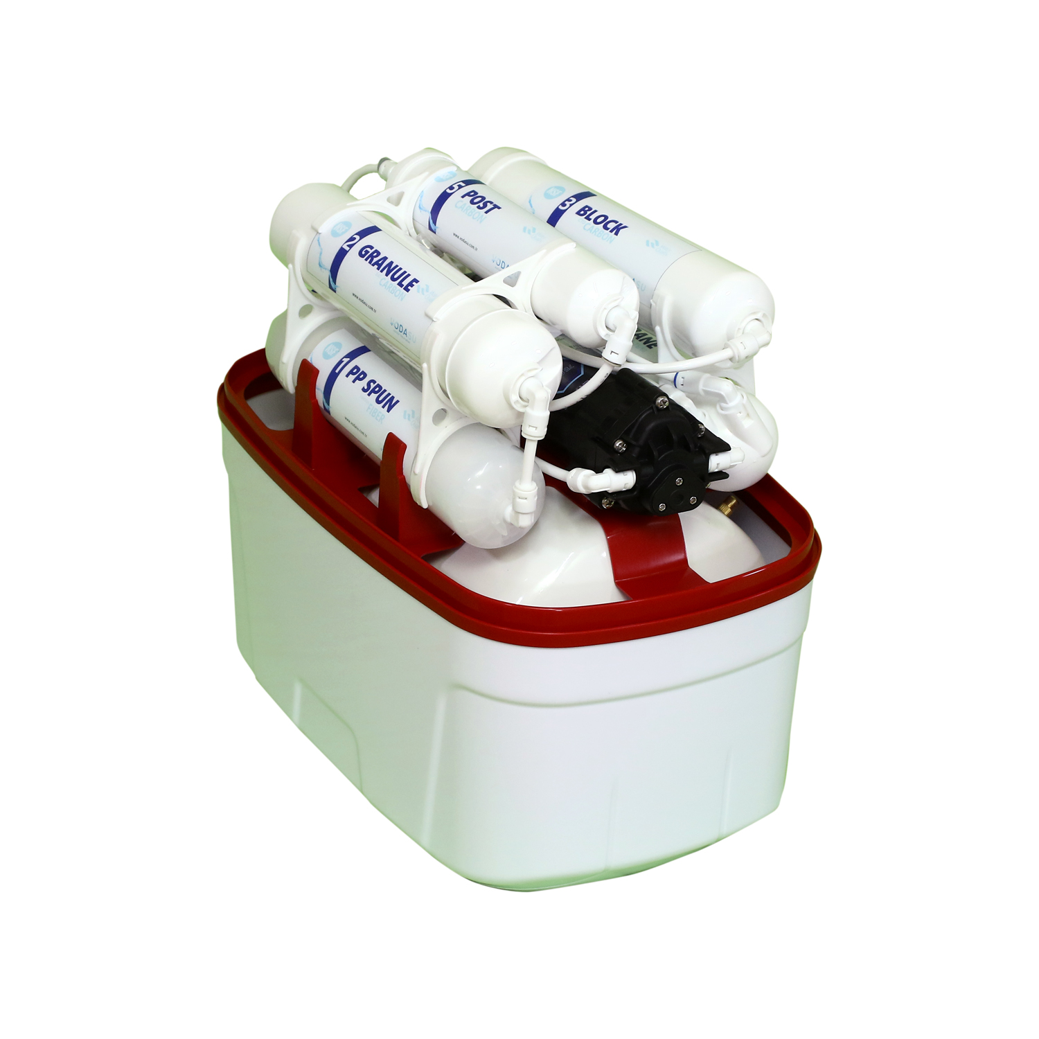 - 80 Gpd Membrane Filter: Being the brain of the system, this filter separates the water at the molecular level and produces pure water while throwing the wastes out.